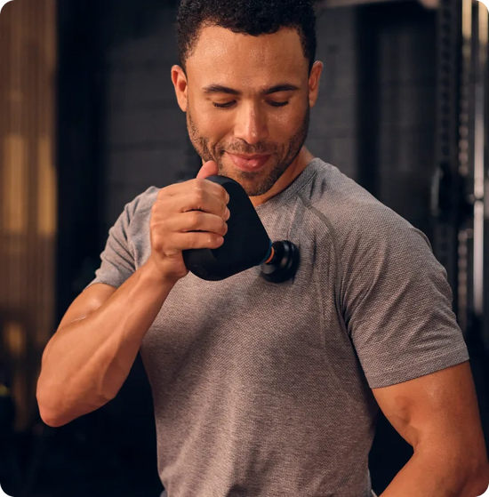 Josh uses the Theragun Mini Plus with quick 15-second bursts on his shoulders, glutes and lower back to stay loose and ready to perform every time he steps back on the field. With heated percussive massage that speeds up recovery, you can feel results faster and keep your body primed to perform.